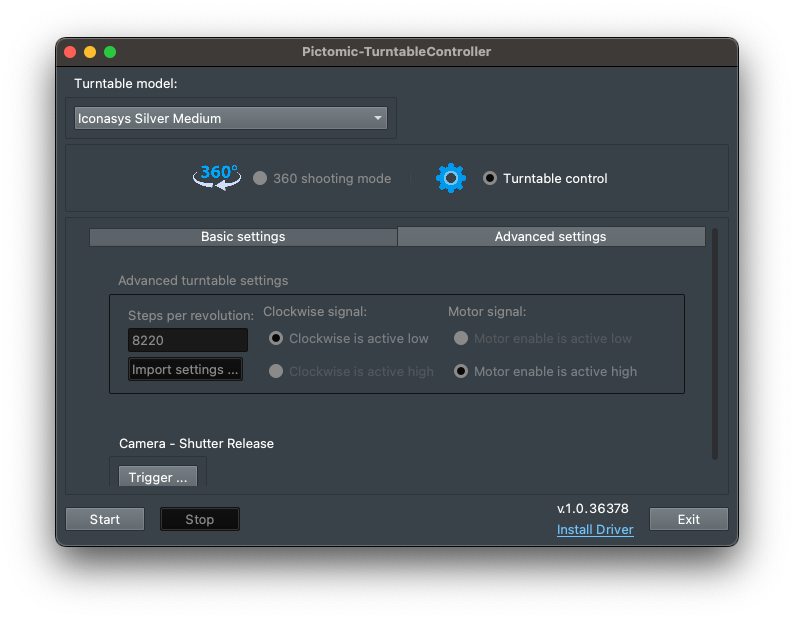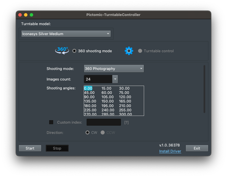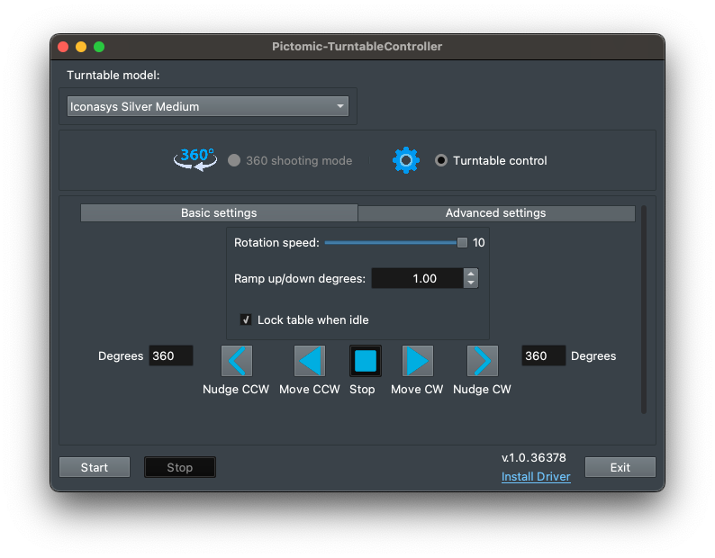 The Pictomic Photography Turntable Controller is a free, standalone application designed to provide seamless control over Pictomic turntables. It offers precision movement, automated rotation, and customizable control settings, making it an essential tool for users who need efficient 360° product photography and image capture.