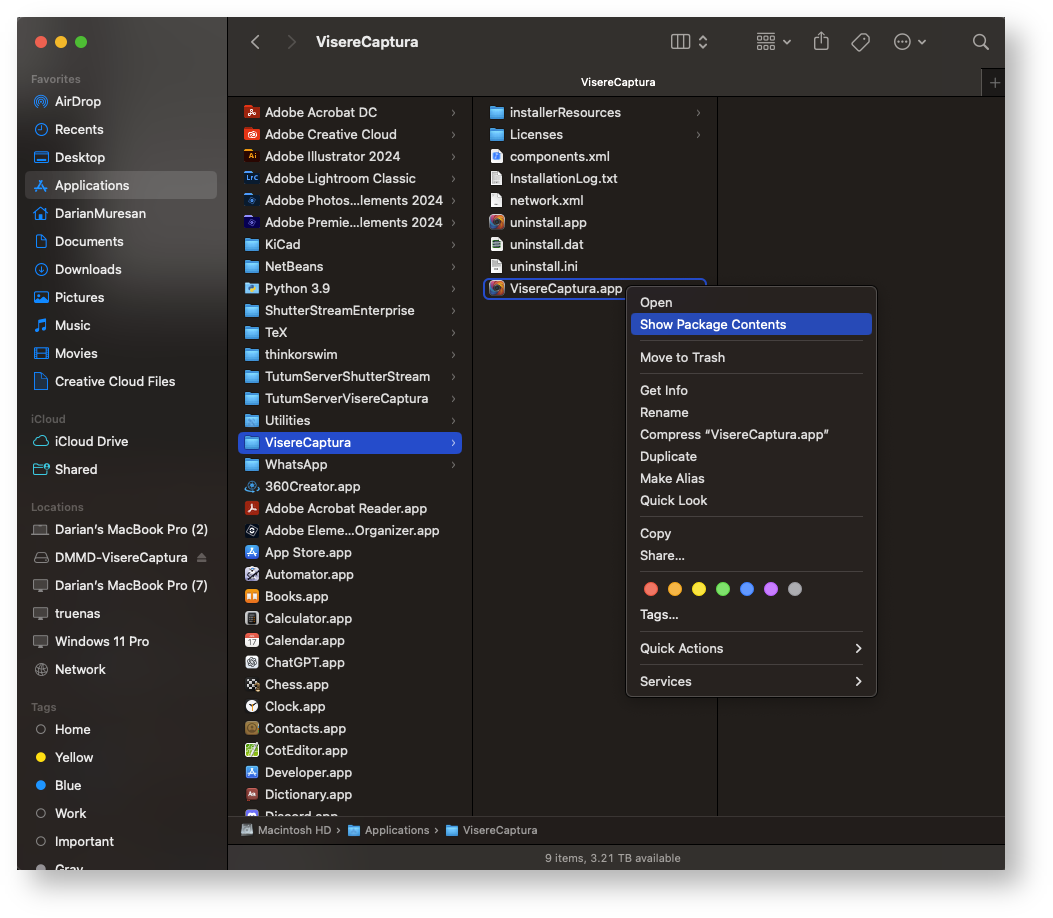• For Mac: Right-click on Visere Captura and select “Show Package Contents”.