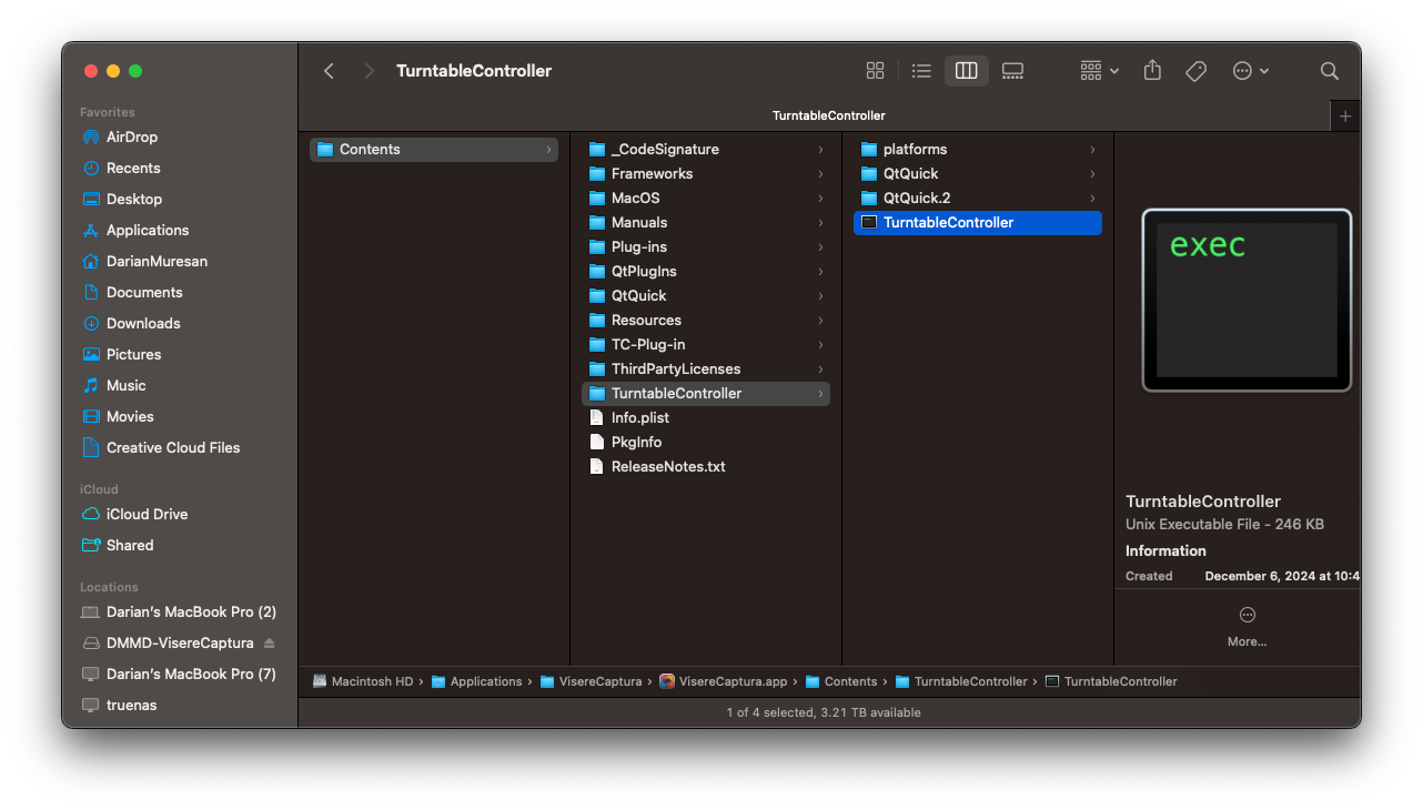 • For Mac: Navigate to Contents/TurntableController within the Visere Captura package, where you will find the free Pictomic Turntable Controller application.