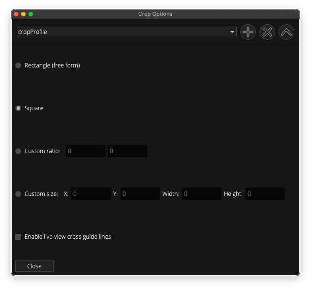 Once exposure adjustments are completed, users can delineate a 'Pre-Crop' around their subject using Visere Captura. This cropping can be done in free-form, at a custom ratio (e.g., 8 x 5), or as a perfect square. Additionally, users have the option to save multiple 'Crop Profiles' within the software, which are stored for future use to ensure imaging consistency.